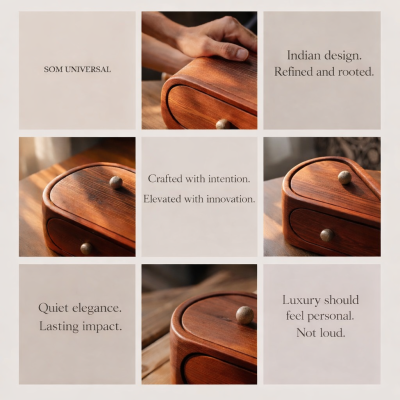 SOM Universal is an India based design, manufacturing, and export company engaged in the development of innovative wooden light and art objects. The company operates as a concept led design house, driven by material research, thoughtful innovation, and disciplined execution for global markets.
